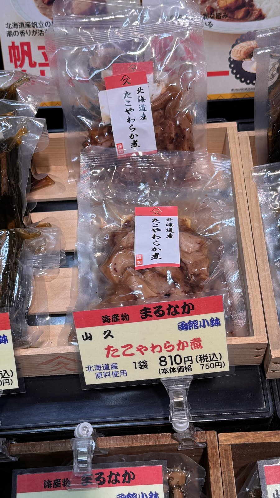 | 原材料名 | たこ(北海道産)、砂糖、醤油、昆布だし(昆布(日高産))、食塩、本みりん、(一部に小麦・大豆を含む) |